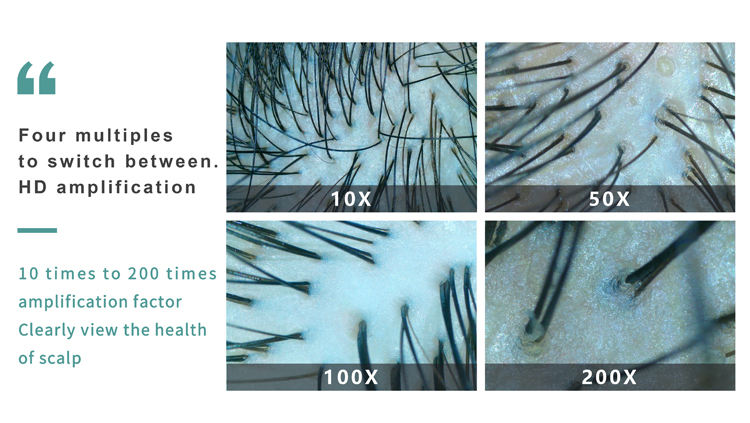 Cuidado de la alopecia (10X), Detección del cuero cabelludo (50X/100X/200X)