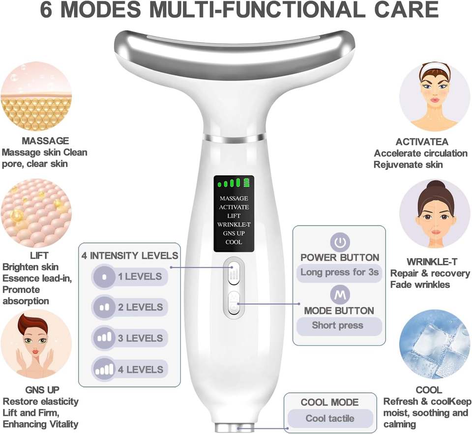 Masajeador de fotones de luz roja portátil, dispositivo para cara y cuello, 4 colores LED, 6 modos, 4 niveles de intensidad, terapia caliente con hielo, ajuste de doble mentón