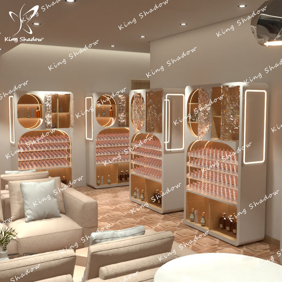 Esmalte de uñas de Metal personalizado portátil al por menor, lápiz labial, belleza llamativa, soporte de exhibición de pared, estante de almacenamiento de cosméticos
