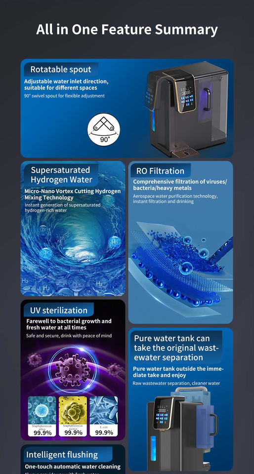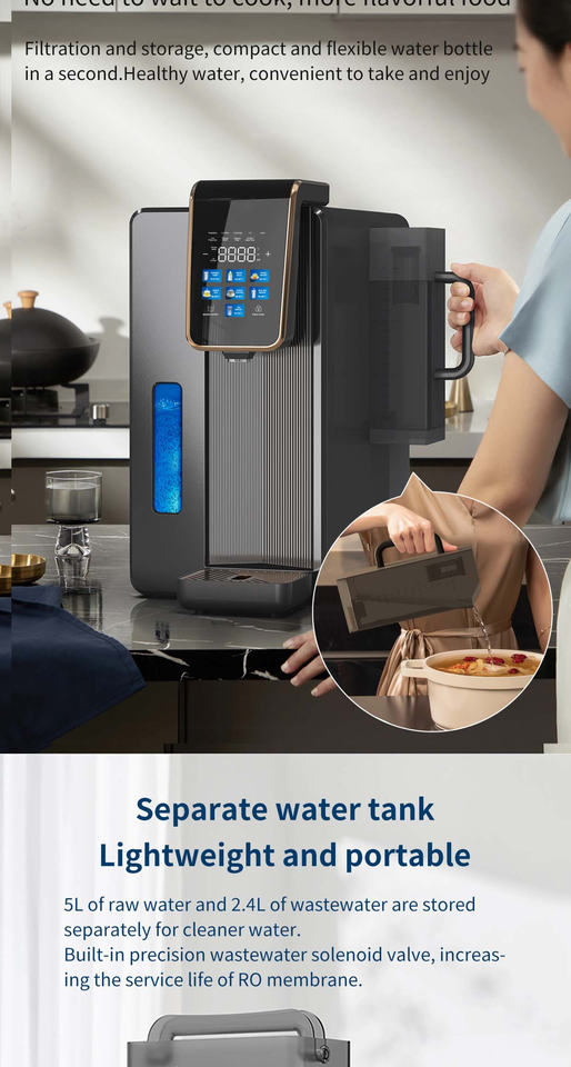 Purificador de agua alcalino de ósmosis inversa portátil, de encimera Ro purificador de agua, dispensador de agua de temperatura de seis etapas
