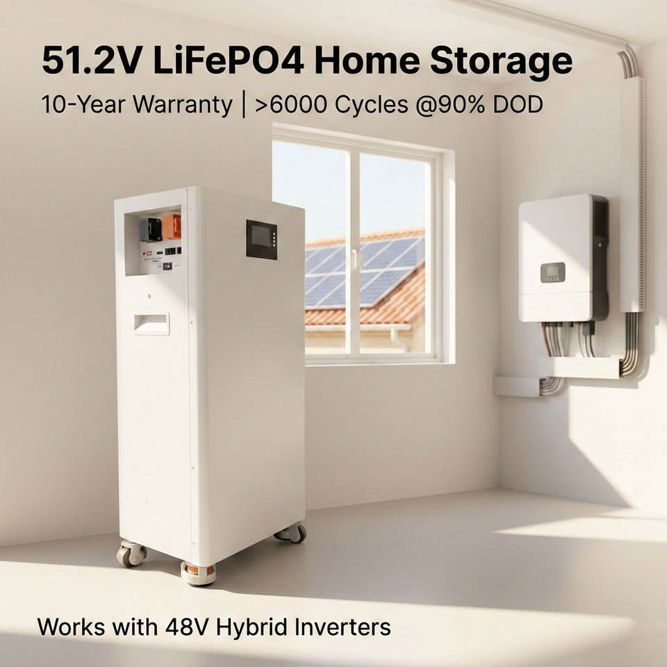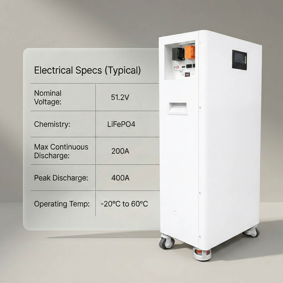 Paquete de Baterías ESS Portátil con Ruedas, 51.2V 100Ah 5120Wh con BMS para Energía de Respaldo en el Hogar