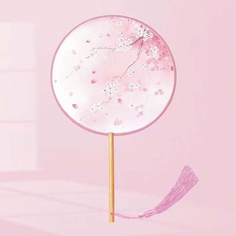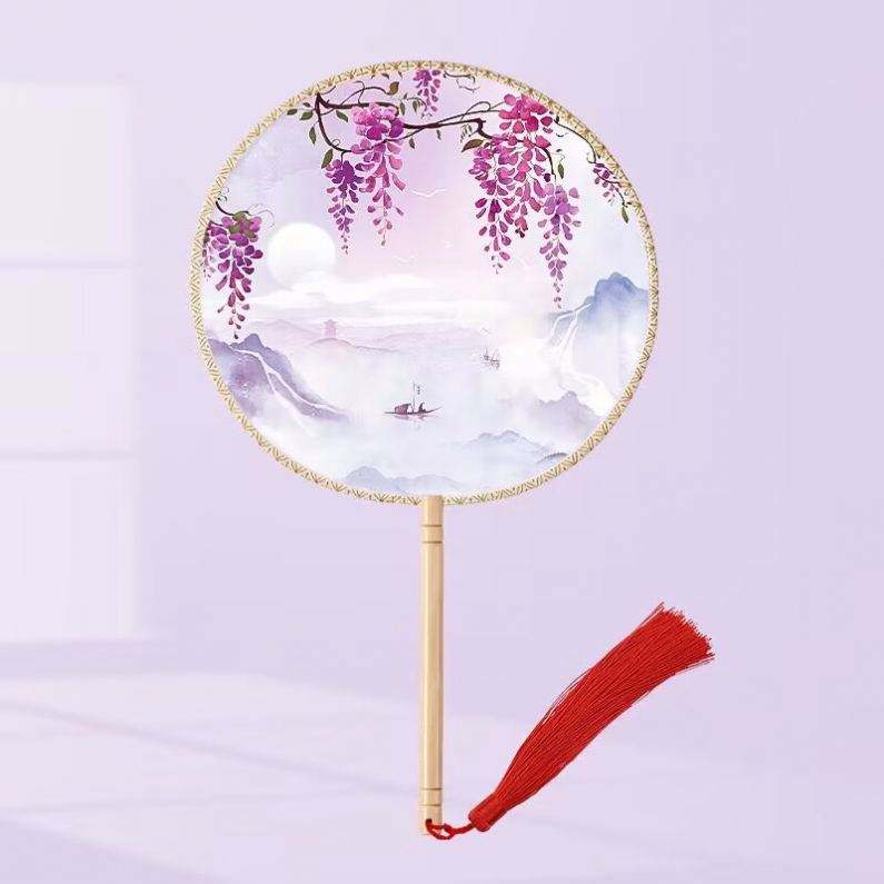 Abanico de Mano Redondo Portátil de Bambú con Diseño de Arte Folclórico Floral Pintado, Ideal como Regalo Promocional o Souvenir Empresarial