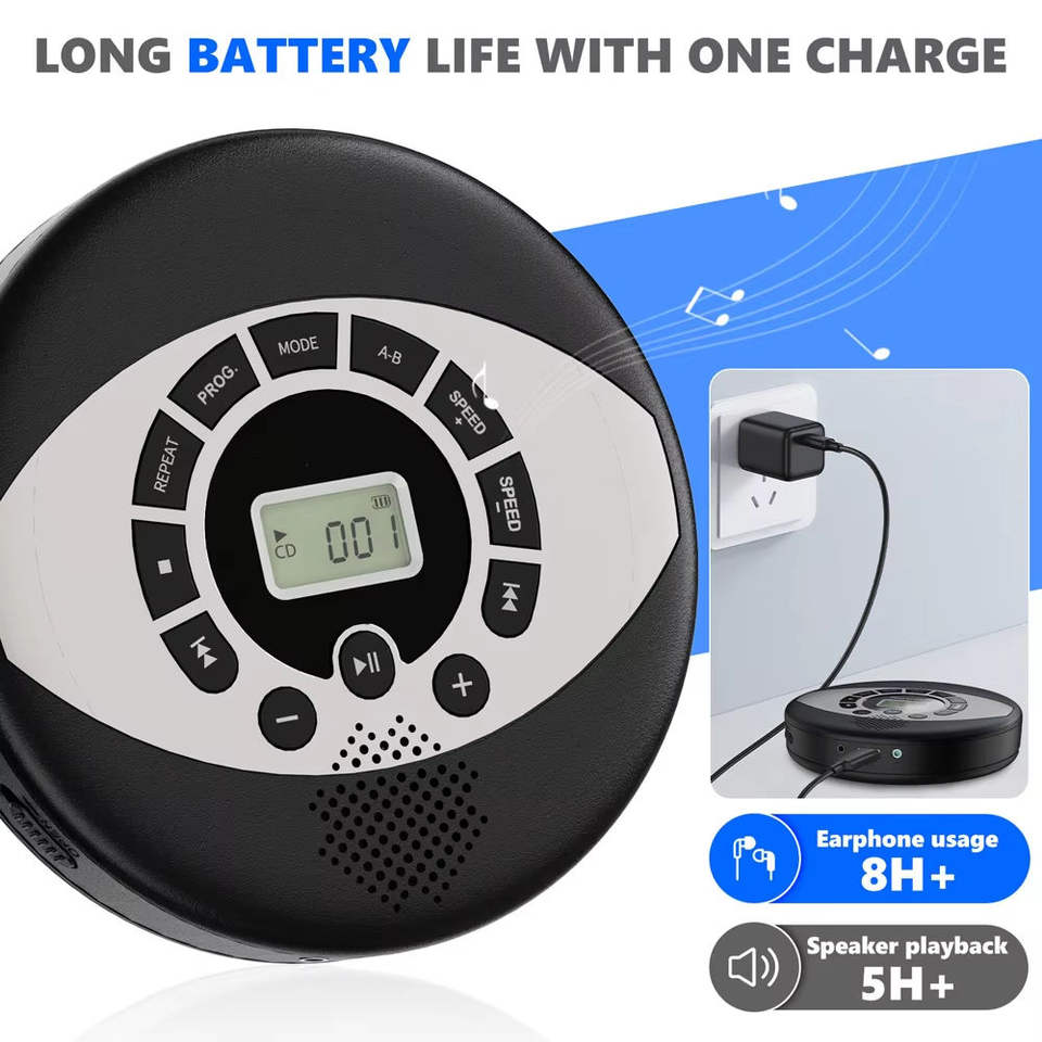 Reproductor de CD Portátil Resistente a Golpes, con Bluetooth, Altavoz Integrado, Pantalla LCD, Control de Velocidad, Walkman para Estudiantes, Aprendizaje de Idiomas