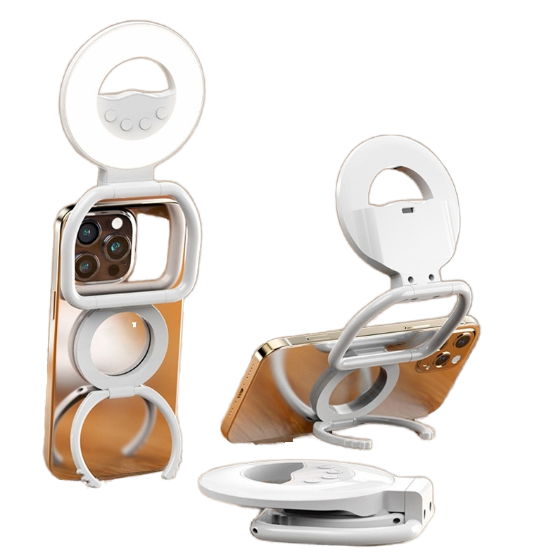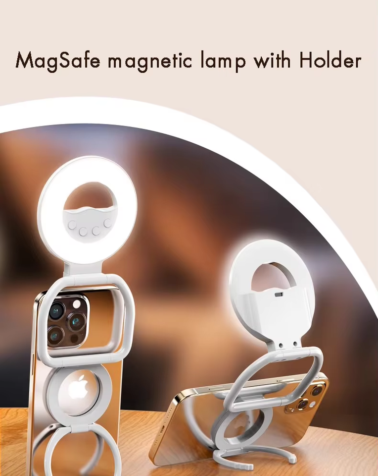 Anillo de Luz Magnético Portátil Delgado Pro con Soporte de Succión para Teléfono, para Selfies, Fotos, Uso en Exteriores y Escritorio, Carga Tipo-C/USB, Batería de 800mAh