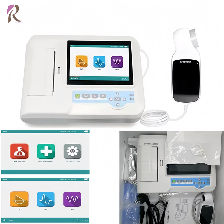 Lung Function Testing, Forced Vital Capacity (FVC) Measurement, Vital Capacity (VC/SVC) Measurement, Maximum Voluntary Ventilation (MVV) Measurement, Respiratory Waveform Display, Flow-Volume Loop & Volume-Time Curve Display, Automatic Age Estimation, BTPS Automatic Correction