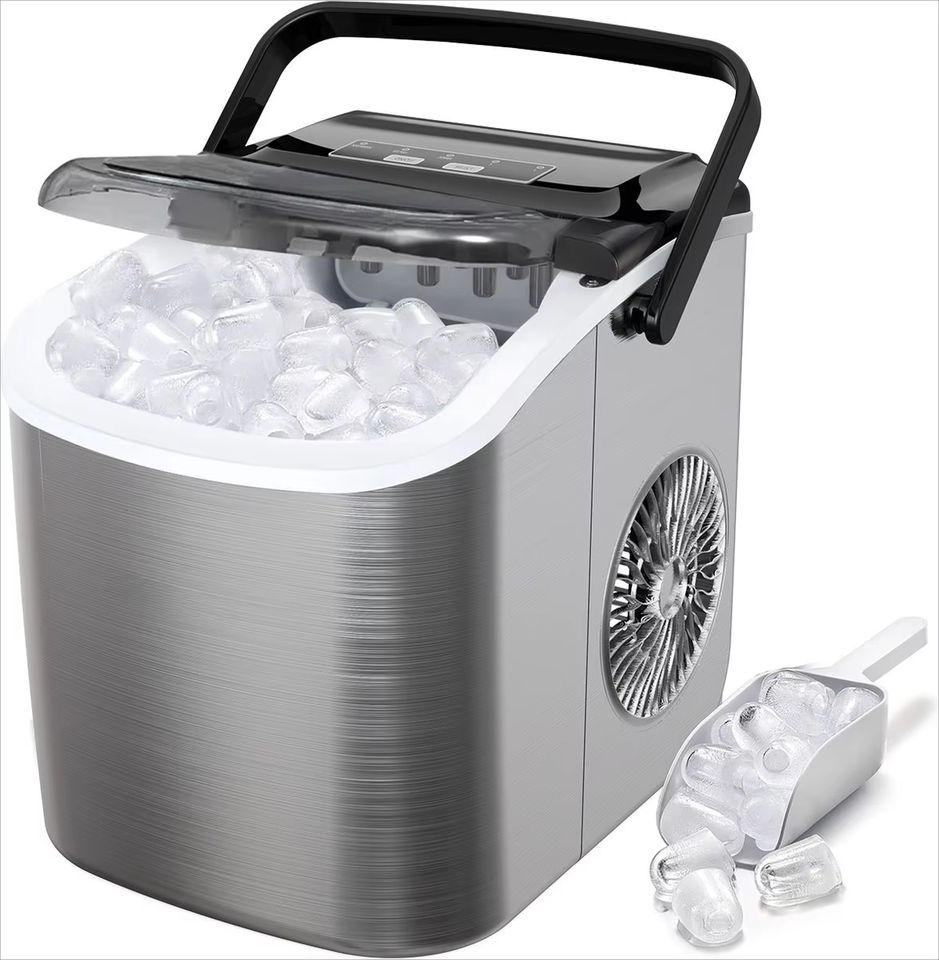 Máquina Portátil Eléctrica de Acero Inoxidable para Hacer Cubitos de Hielo con Capacidad para 9 Cubitos en 6-8 Minutos para Uso en el Hogar y al Aire Libre