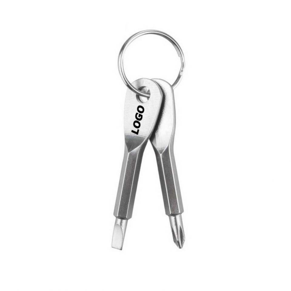 Destornillador EDC Portátil de Acero Inoxidable, Herramienta Multiusos Mini para Llavero, para Uso Diario, Promocional con Serigrafía