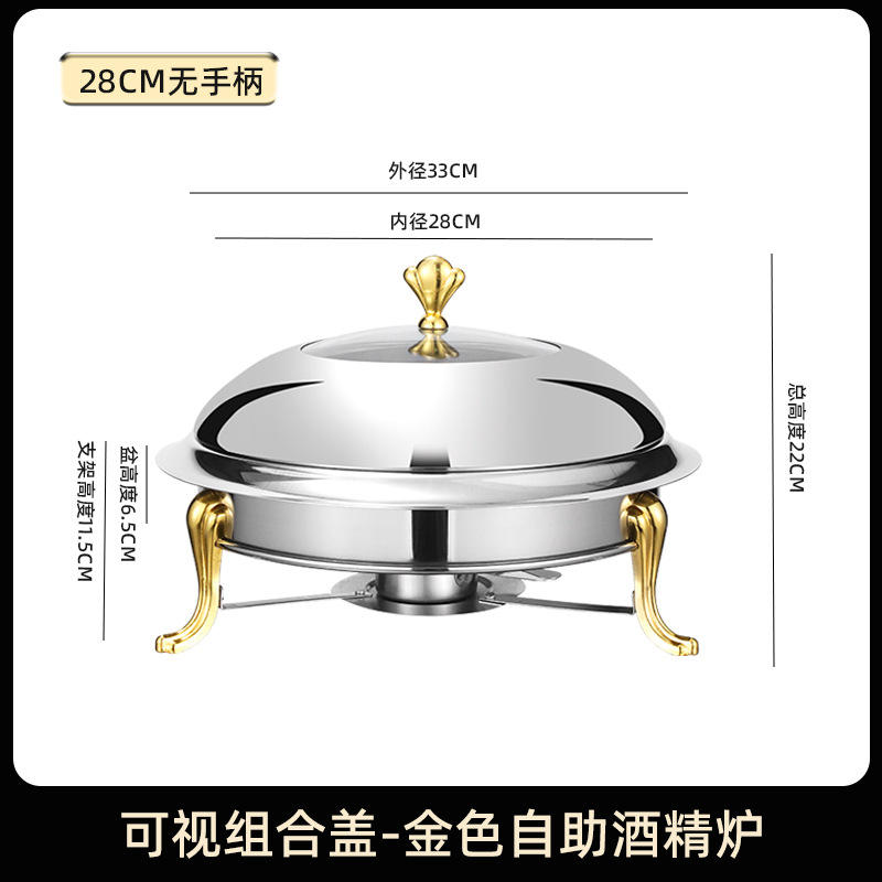 Estufa de alcohol de autoservicio portátil de acero inoxidable, cubierta Visual, olla caliente para cena para hoteles y espacios pequeños, ollas para sopa y existencias