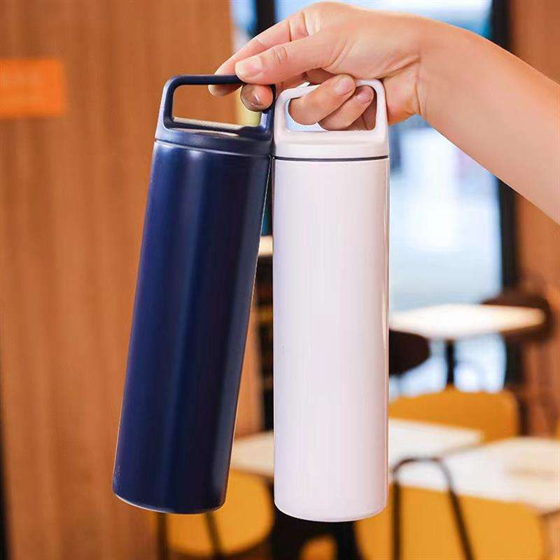 Botella de Agua Portátil de Acero Inoxidable con Asa para Ciclismo, Deportes al Aire Libre, Viajes, Taza Recta de Boca Ancha de Metal