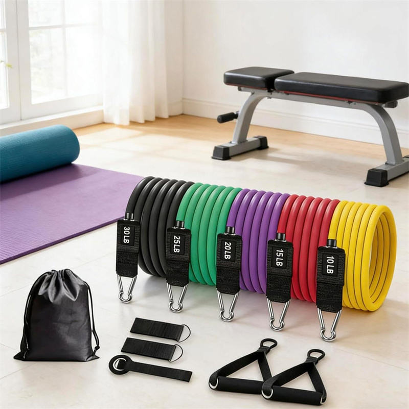 Juego de bandas de resistencia para entrenamiento de fuerza, yoga y ejercicios con asas