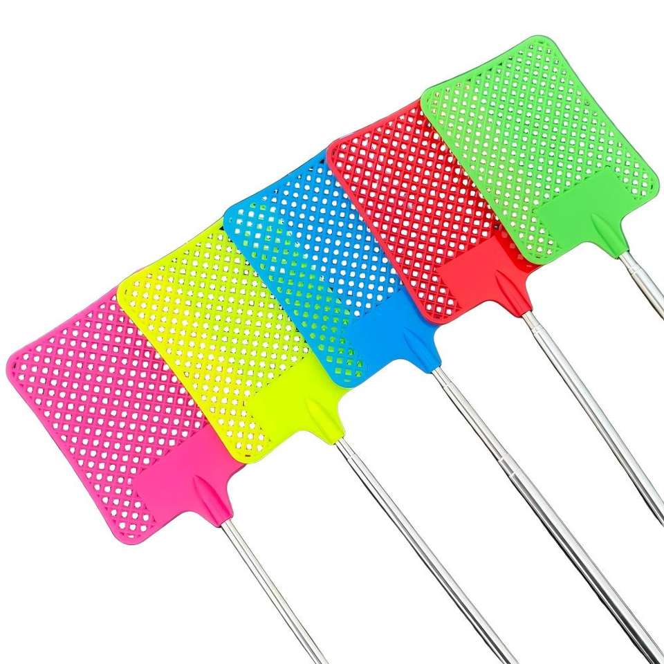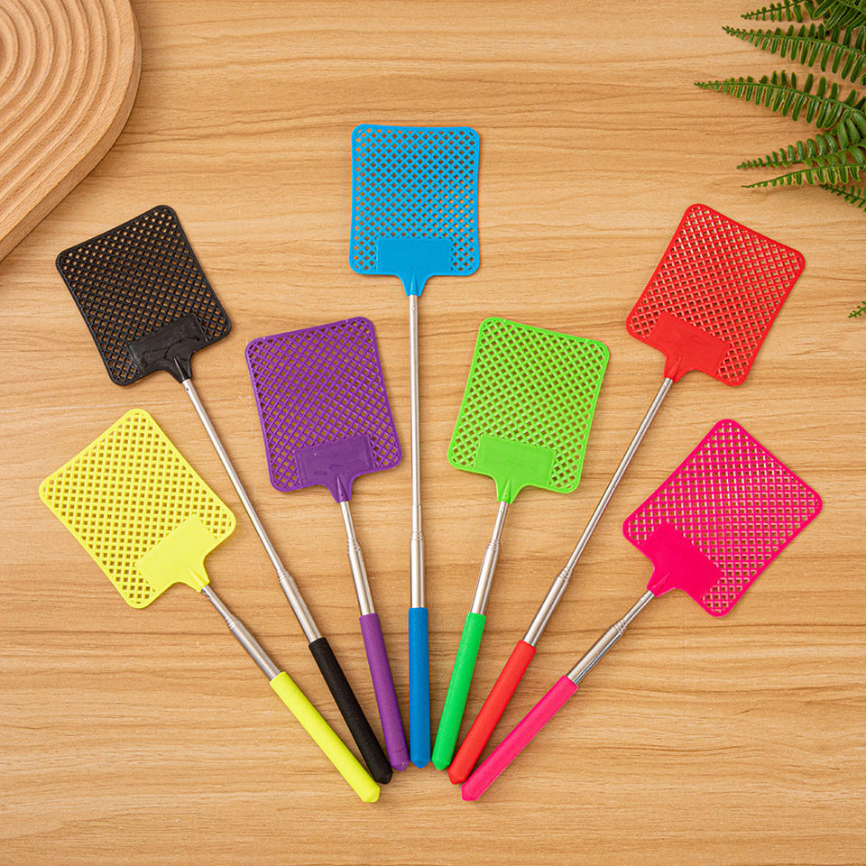 Matamoscas Telescópico Portátil con Palo Extensible, Herramienta Manual de Metal y Plástico para el Hogar, para Mosquitos y Moscas
