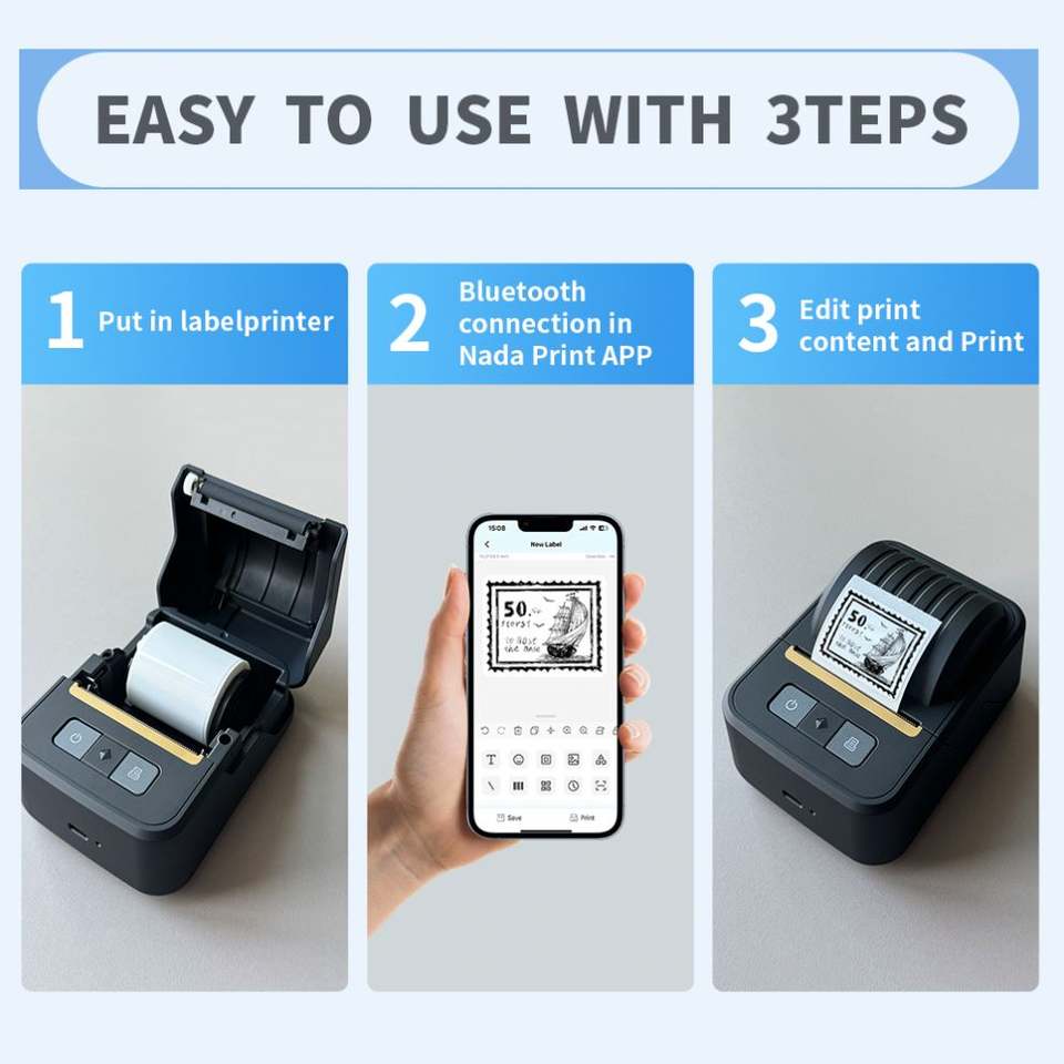 Impresora Portátil de Etiquetas Térmicas, Precisión de 203 DPI, Velocidad de 40 mm/s, Batería de 2000 mAh, Compatible con SDK para Impresión por USB