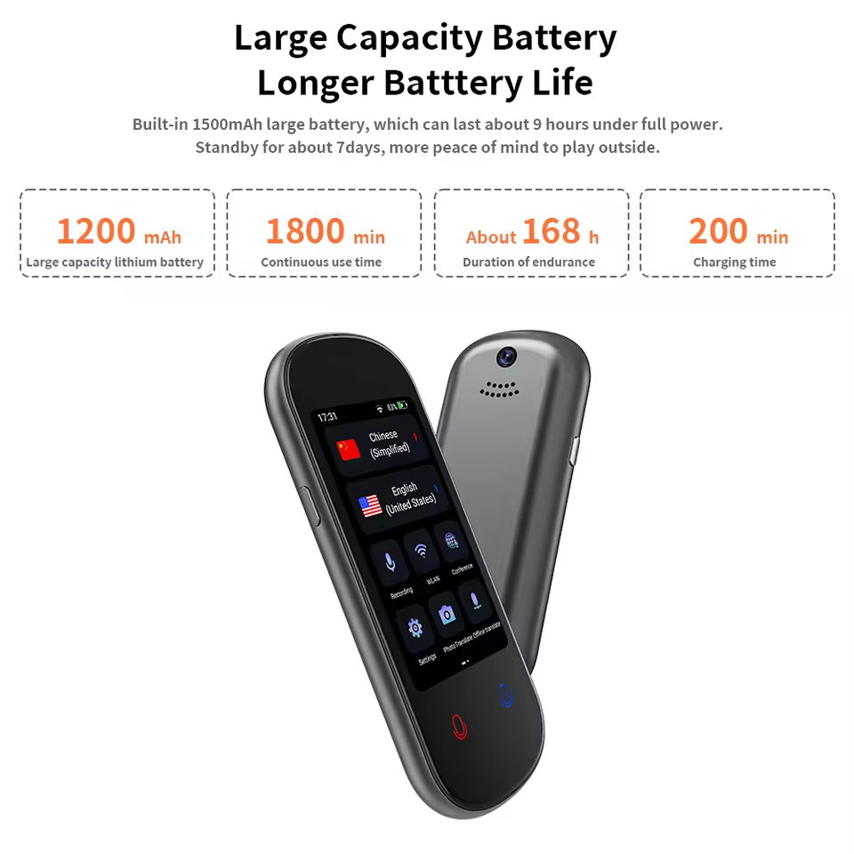 Traducción portátil 138 idiomas bidireccional voz instantánea dispositivo traductor de voz fuera de línea traductor de fotos de voz 1500mAh batería