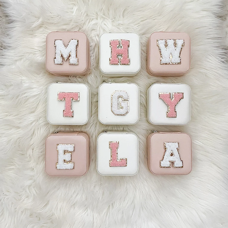 Caja de almacenamiento de joyería de viaje portátil Diseño de logotipo de alfabeto personalizado Perfecto para pendientes Anillos Collar Accesorios
