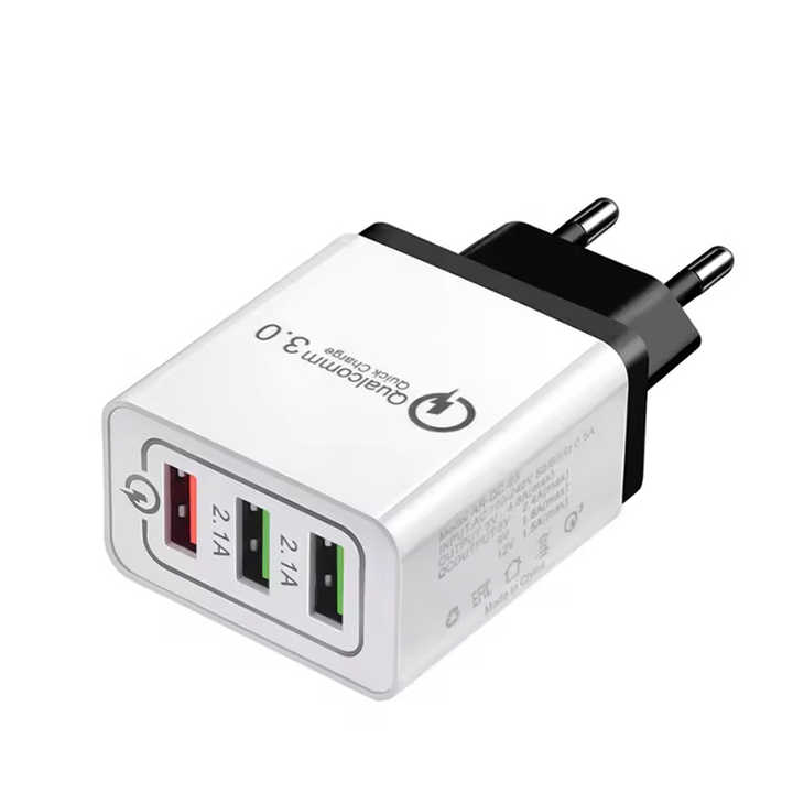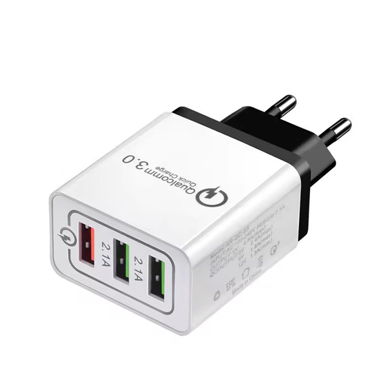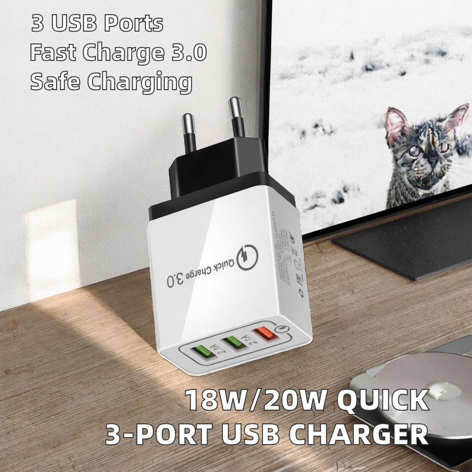 Cargador de teléfono de viaje portátil 3,0 enchufe rápido adaptador Multi USB de 3 puertos cargador de pared eléctrico de tendencia con conexiones UE/EE. UU.
