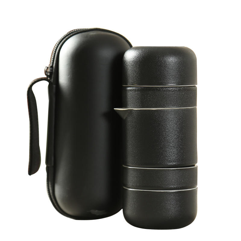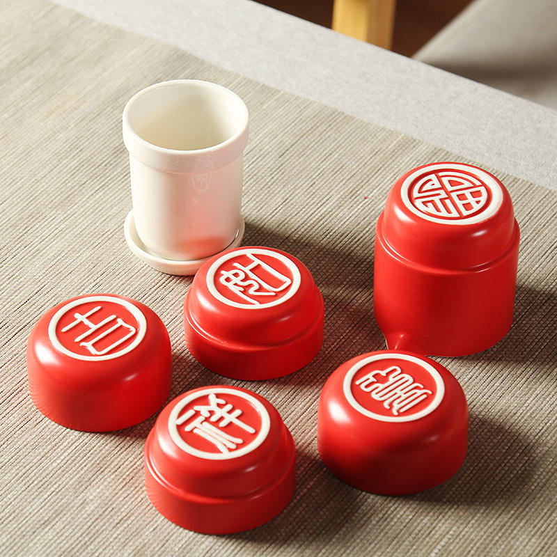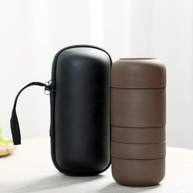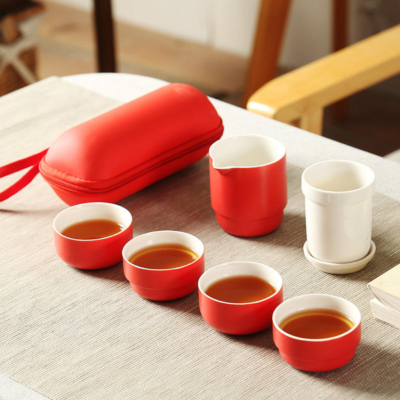 Juego de té portátil de viaje, una tetera y cuatro tazas de cerámica roja con estuche de transporte para viajes, regalo empresarial.