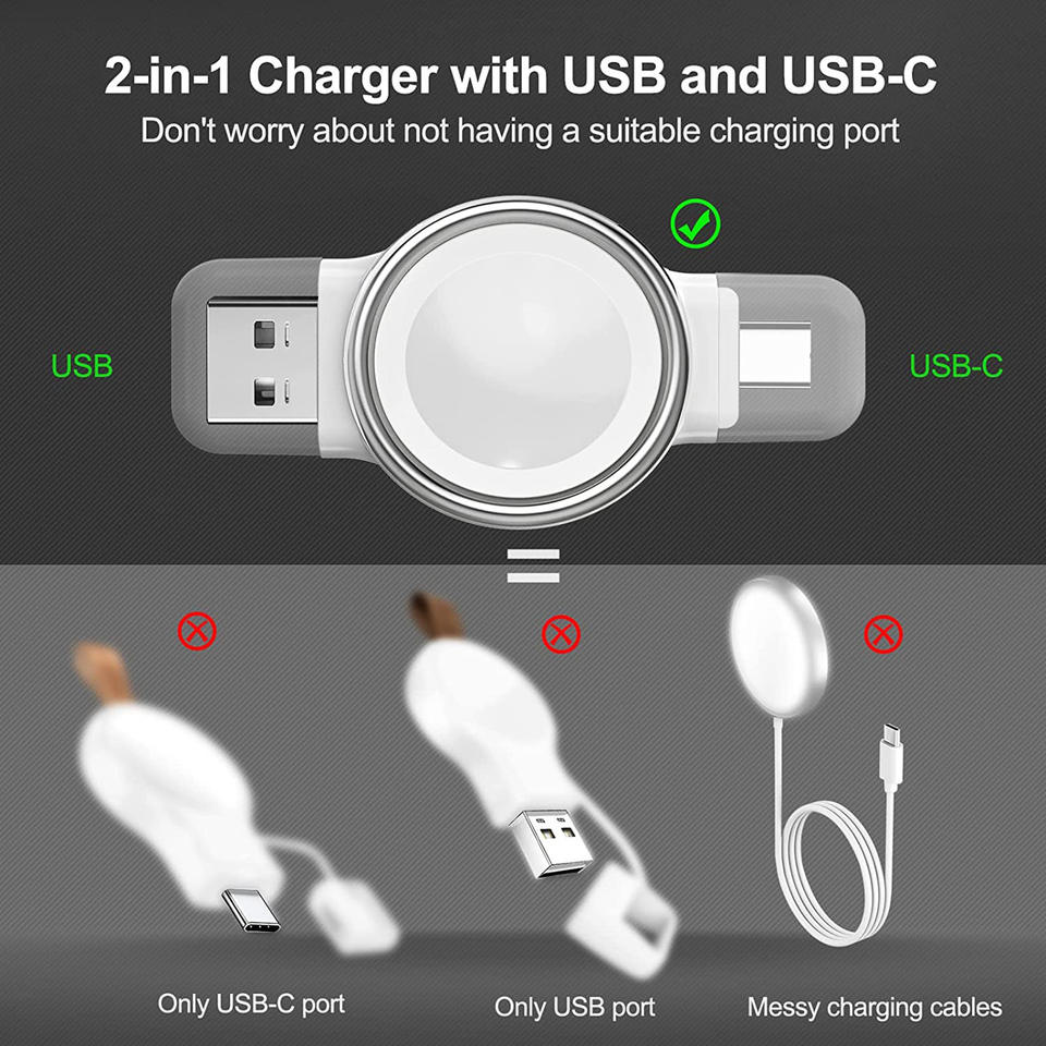 Cargador de reloj de carga rápida inalámbrico magnético 2 en 1 USB tipo C portátil para Apple Watch IWatch 8 7 6 5 SE cargador