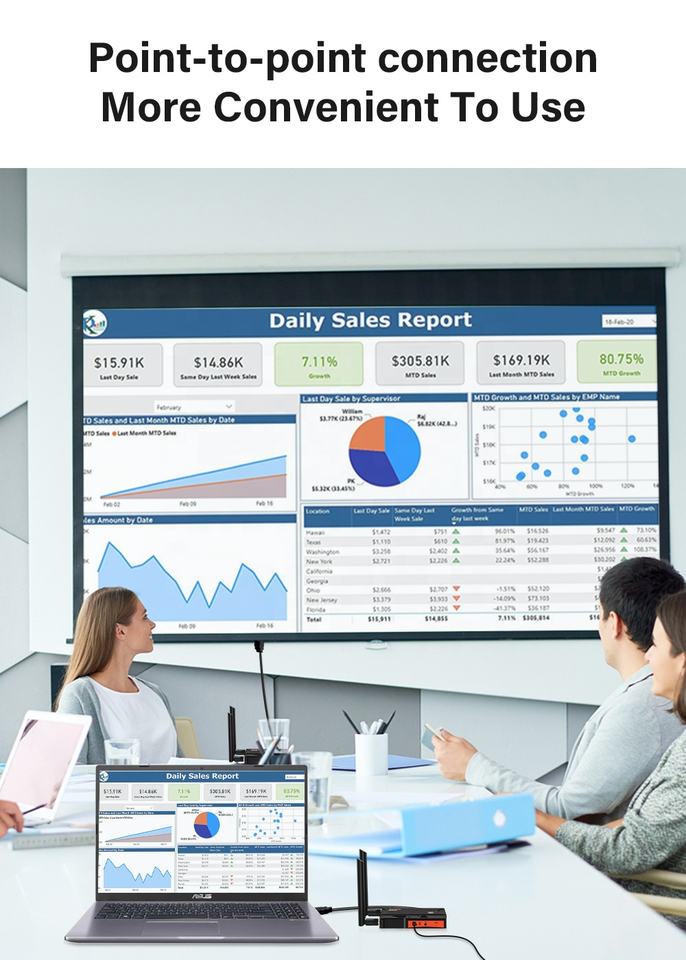 Extensor de Video Inalámbrico Portátil, Transmisión de 250m, Receptor de Proyector Inalámbrico HD 1080P para Cine en Casa