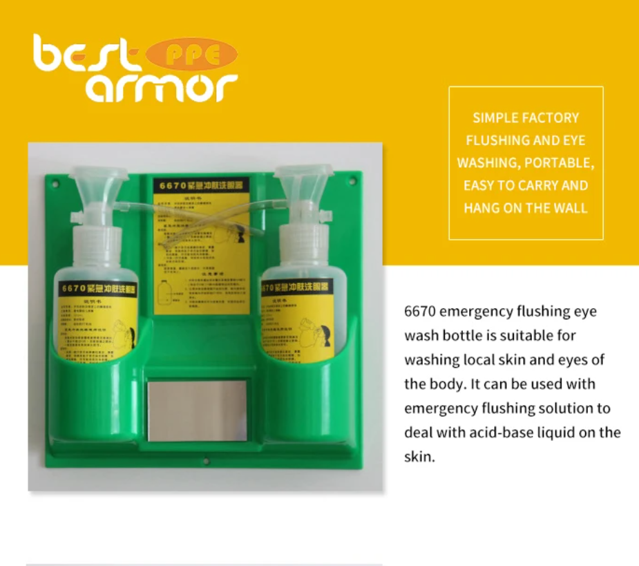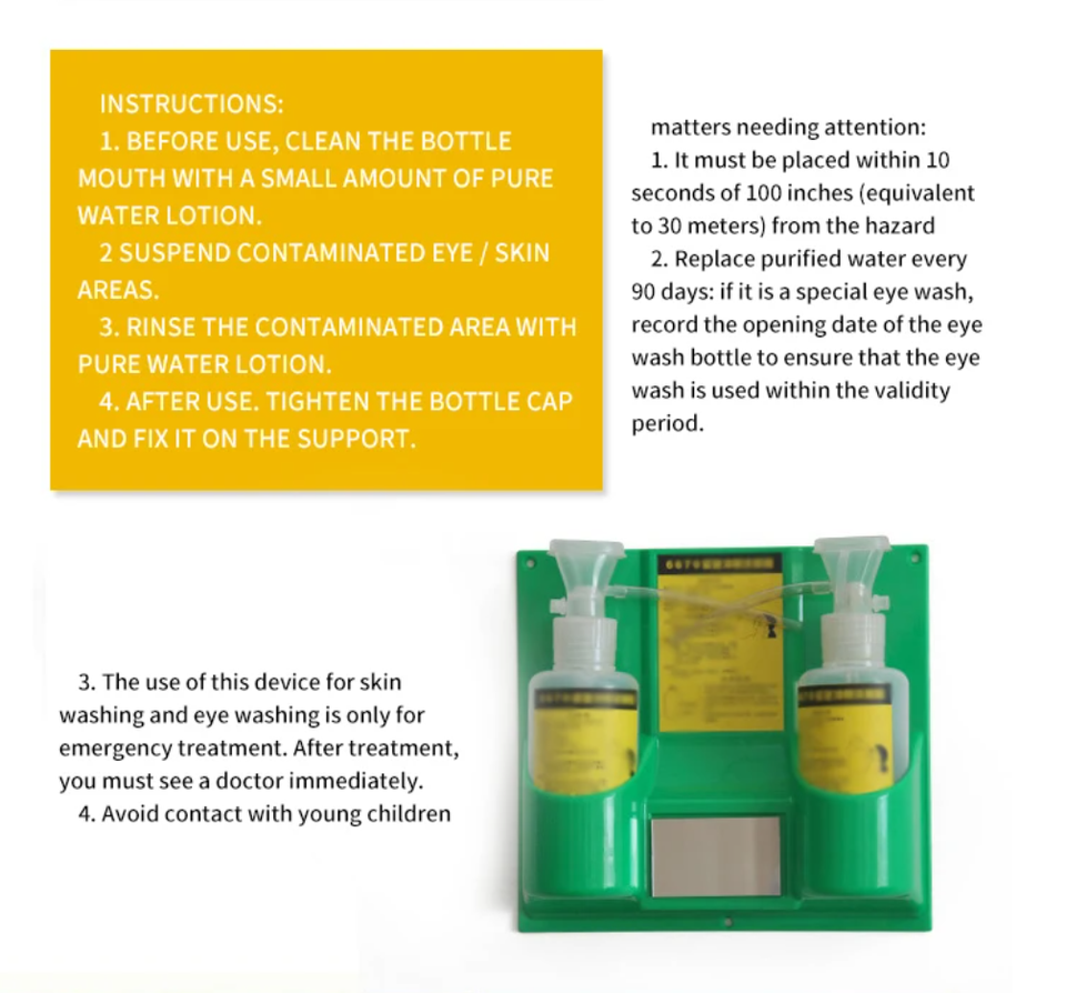 Estación de Protección Ocular de Emergencia Portátil para Montar en la Pared, Botella de Repuesto Doble Vacía de 500 ml para Lavado de Ojos con Kit de Marco de PC
