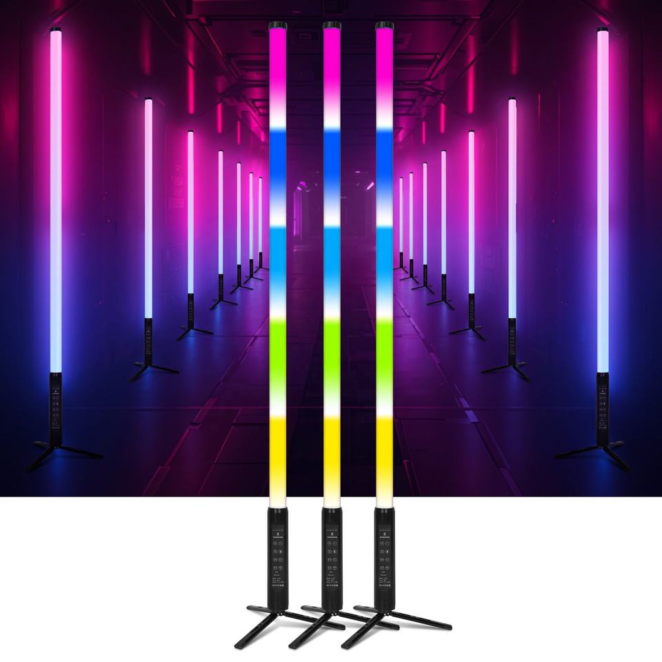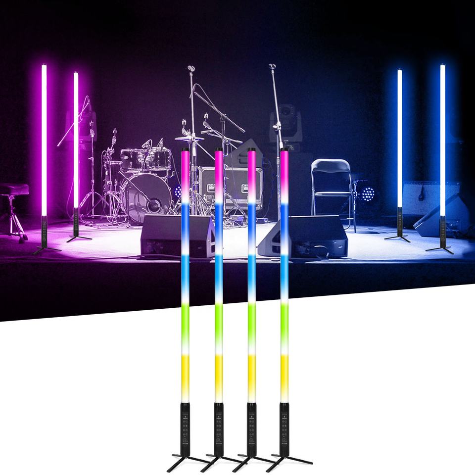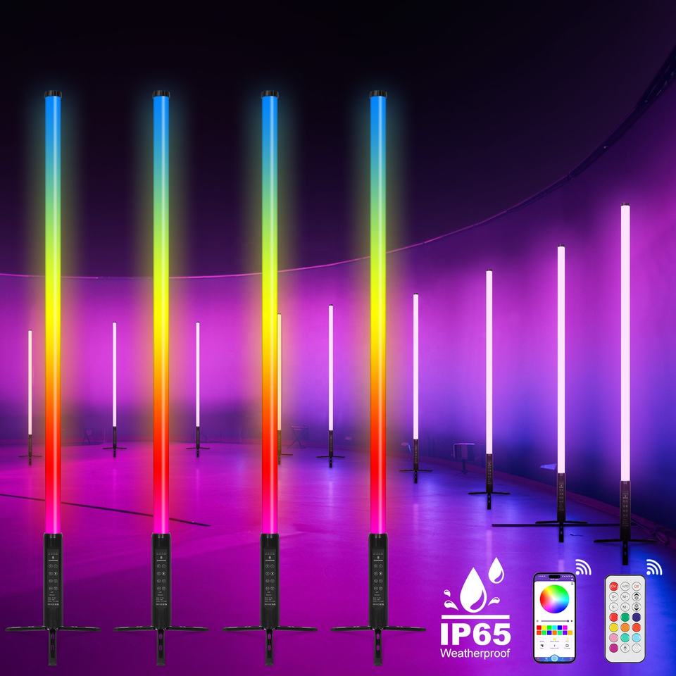 Luz LED Portátil Inalámbrica con Batería, IP65, Tubos LED RGBWA de 150cm (D40), Control Remoto por Aplicación, 360°, para Escenarios, Bodas, Fiestas y DJ