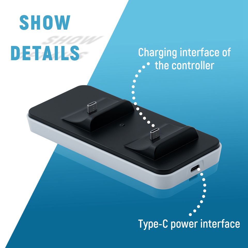 Base de Carga Inalámbrica Portátil para Controles de PS5, PS4 y PS3, Cargador Doble Tipo-C para Gamepad de PS5