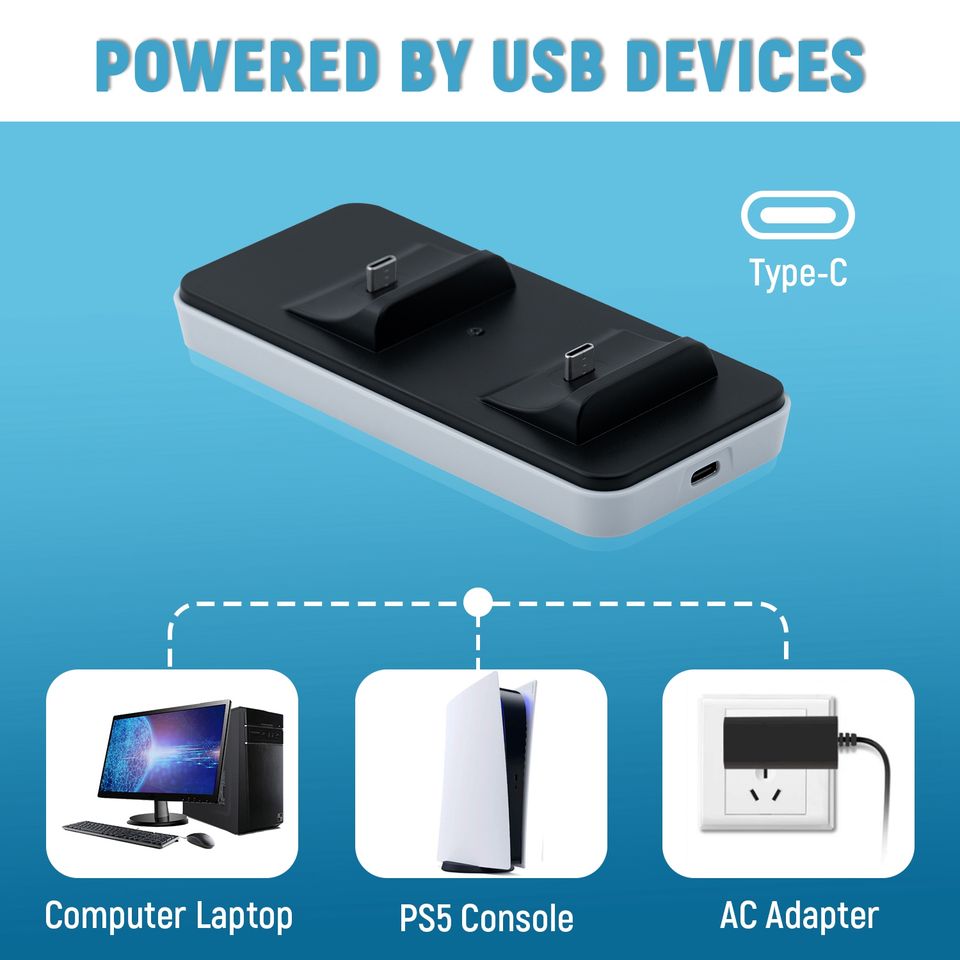 Juego inalámbrico portátil Controlador dual Estación de carga Accesorios de juego Cargador de controlador para SONY para Playstation 5