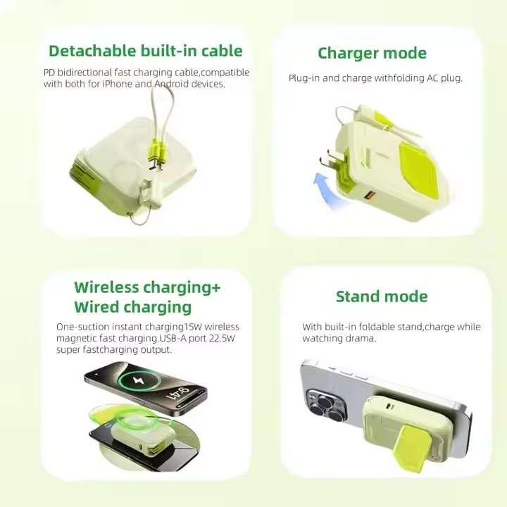 Banco de energía inalámbrico portátil con soporte 22,5 W Cable de carga rápida 10000mAh Teléfono Magnético Mini bancos de energía