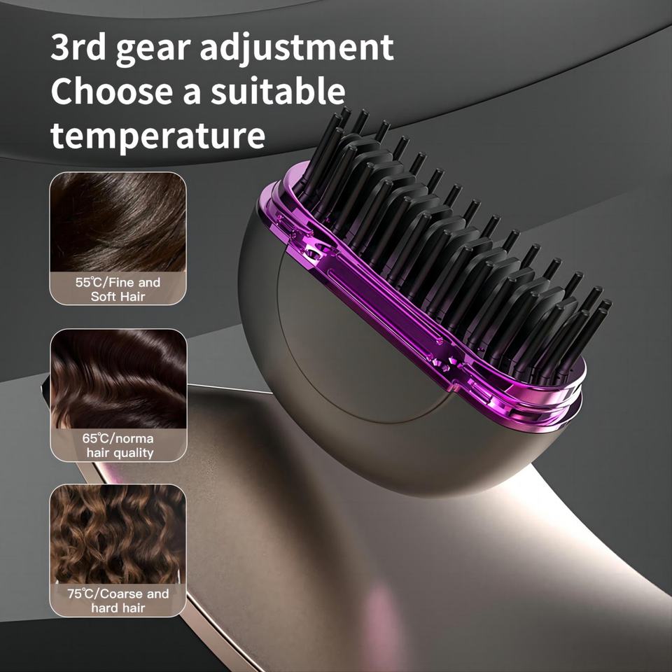 Cepillo Alisador de Cabello Inalámbrico Portátil Recargable, Mini Plancha de Cabello con Iones Negativos, Peine Alisador de Cabello de Cerámica Inalámbrico, Peine para Barba