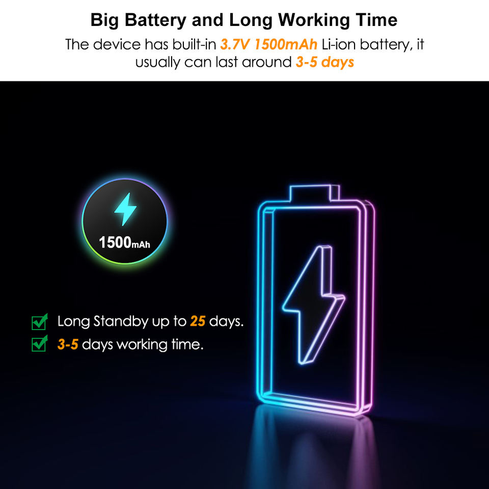 Larga duración en espera, seguimiento en tiempo real, resistente al agua