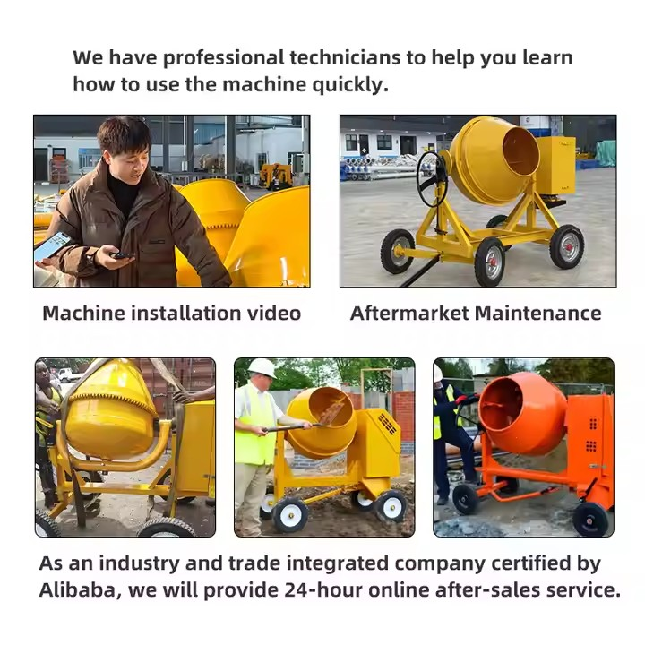 Mezclador de cemento amarillo portátil con caja de cambios de motor de bomba y componentes de núcleo de engranaje incluidos