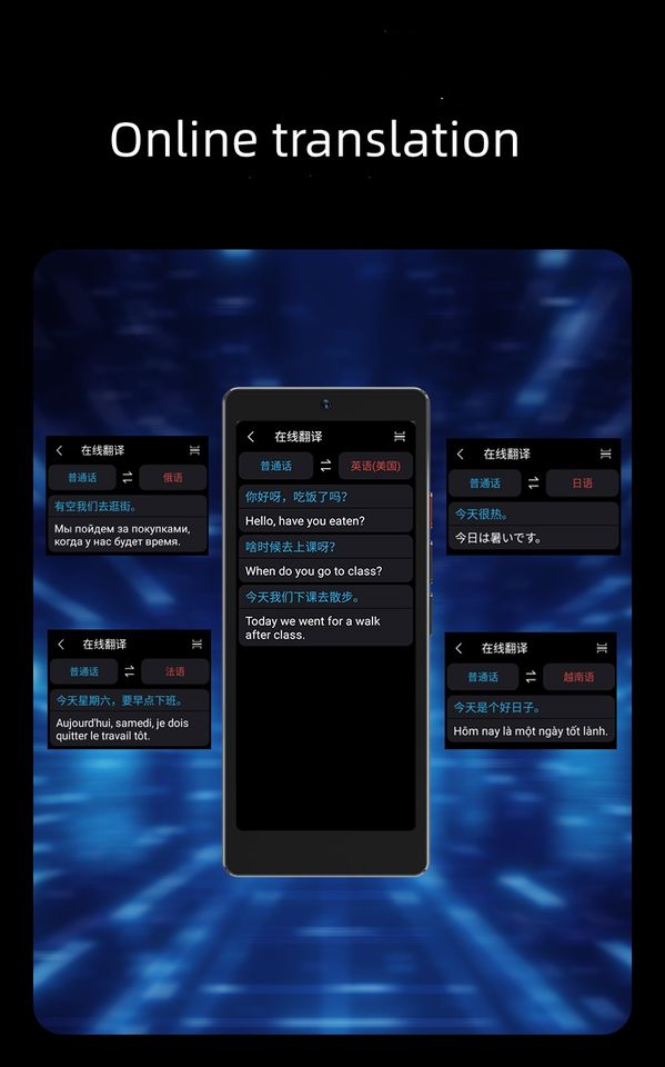 24 horas de instrucción, Traducción cara a cara, Recordatorio de mensajes, Traducción offline, Traducción con un solo clic, Traducción en línea, Reconocimiento fotográfico, Interpretación simultáneaFunción