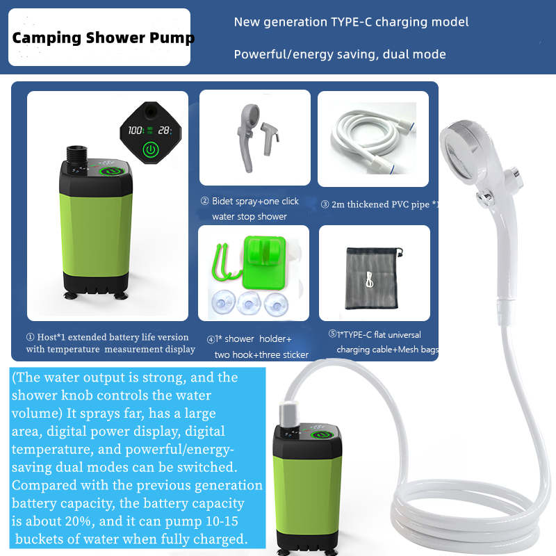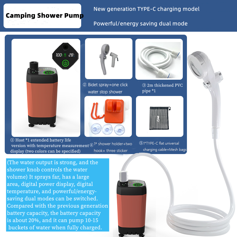 Kit de bomba de ducha eléctrica inteligente portátil para ducha portátil 4500/6000/7800 Mah soporte de plástico pequeño para acampar al aire libre con tubos de Ducha