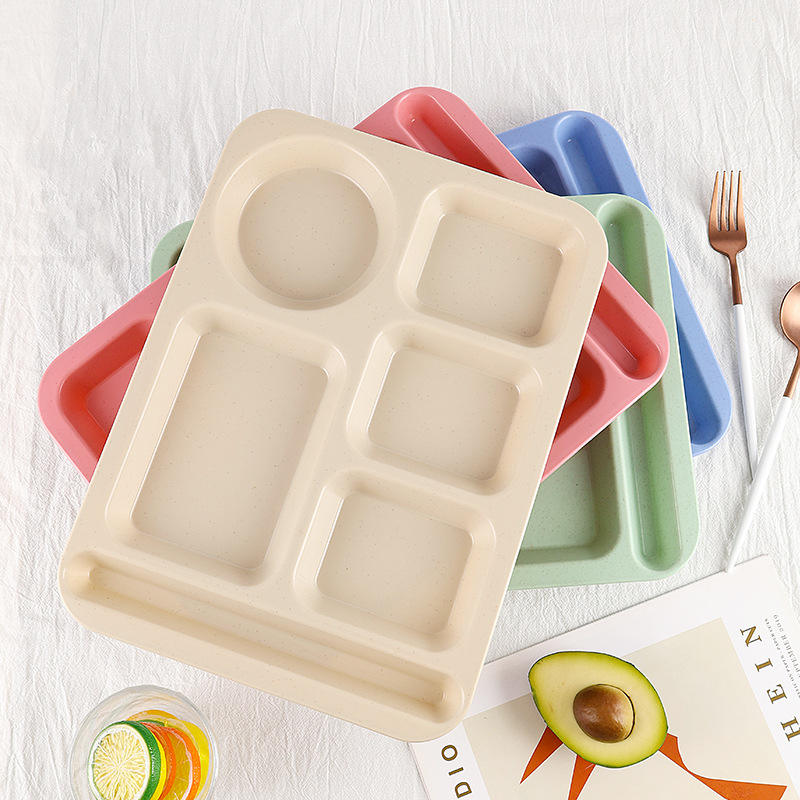Plato de Control de Porciones con 3 Divisiones, Material de Paja de Trigo para Platos de Comida Saludable