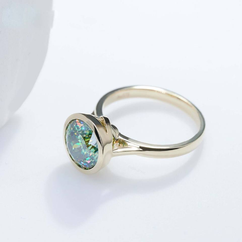 Anillo DE BODA solitario de corte portugués 2.00CT corte redondo verde Original Moissanite anillo de compromiso 14K oro sólido brida regalo