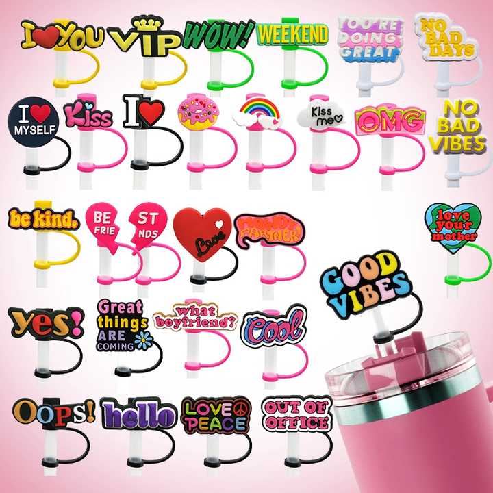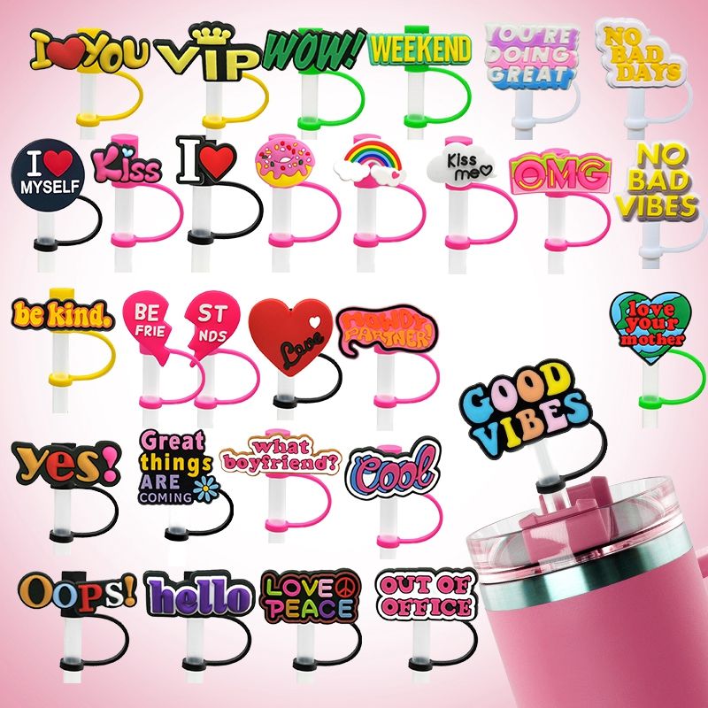 Decoraciones Divertidas para Pajitas con Frases y Corazones para Pajitas Reutilizables, Accesorios Lindos y Divertidos con Palabras para Cubrir Pajitas