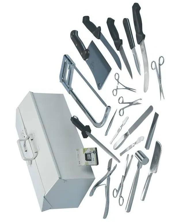 Kit postmortem Kit quirúrgico postmortem Caja de instrumentos postmortem de acero inoxidable Tijeras Pinzas con mango de bisturí