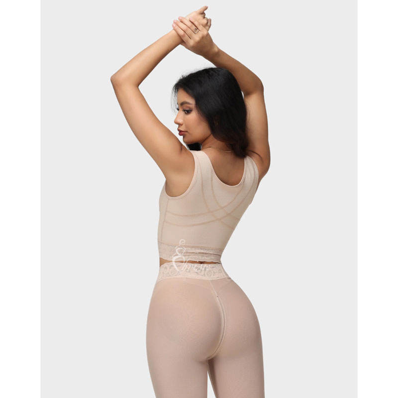Sujetador de compresión posquirúrgico para mujer, top moldeador con realce de senos, cierre frontal, soporte de espalda y faja.
