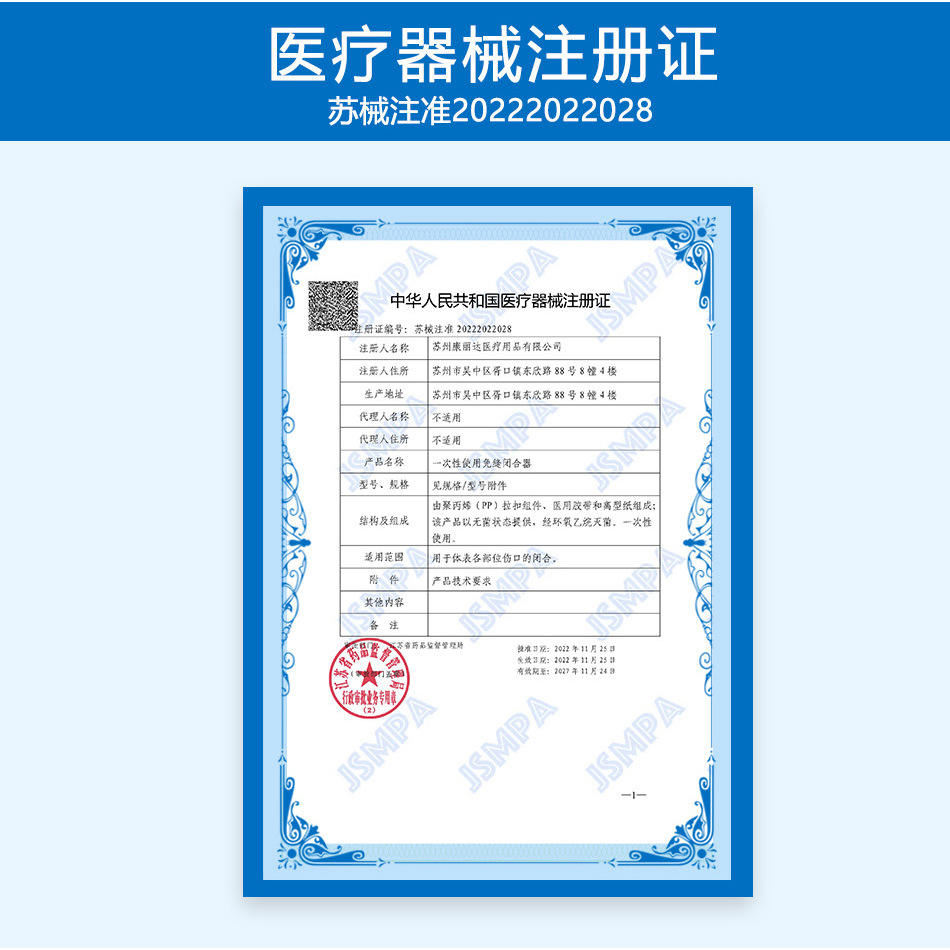 Jiangsu Medical Device Registration Certificate 20222022028Drug (Medical Device) Approval Number