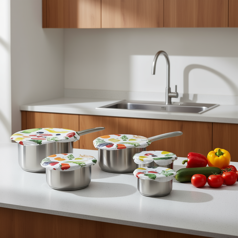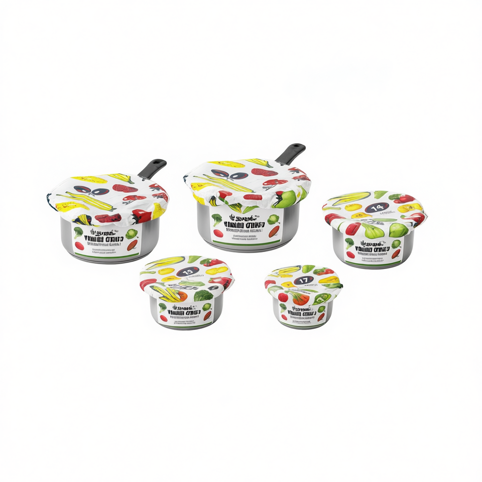 Juego de tapas para ollas de 5 tamaños diferentes (9, 14, 17, 19, 25 cm) para almacenamiento de alimentos con diseño de estampado vegetal para ollas y tazones