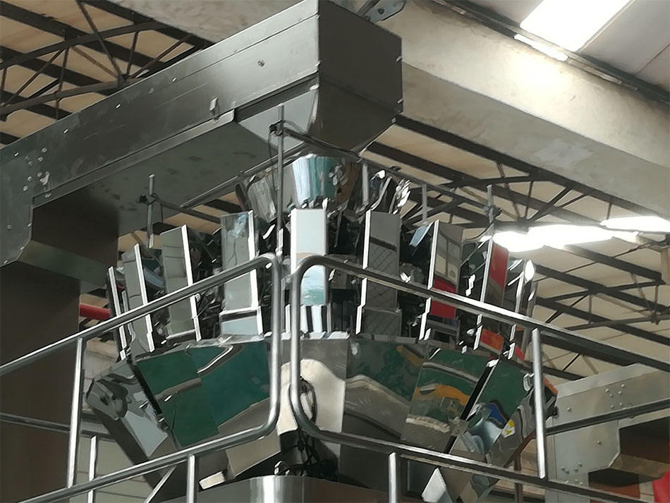 Patatas fritas Corteza de cerdo frito 10 cabezas Pesador Galleta de gambas Limón seco Palomitas de maíz Máquina de embalaje de película