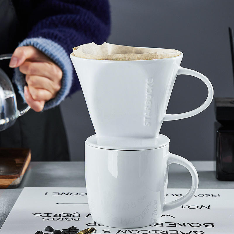 Cafetera de goteo con filtro de cerámica en forma de cono para 4-6 personas con jarra de vidrio, color blanco sólido.