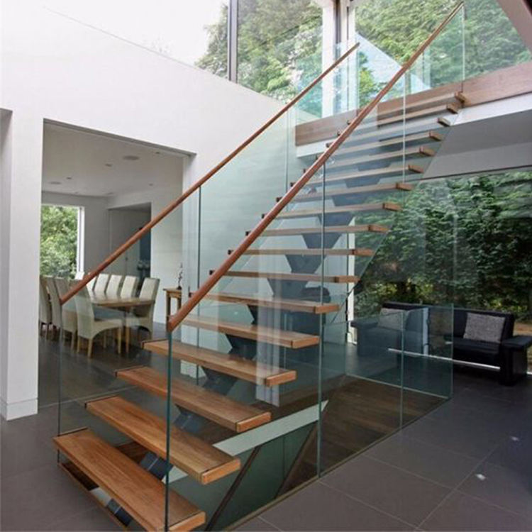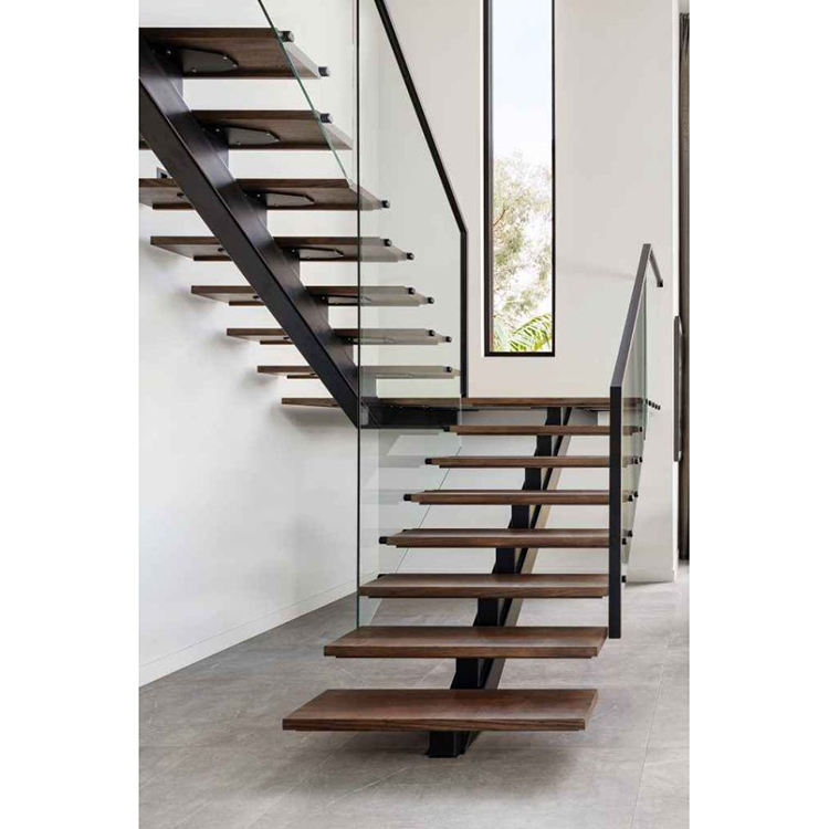 Escalera de rayo Mono con recubrimiento en polvo, diseño con escalones de madera, escaleras prefabricadas