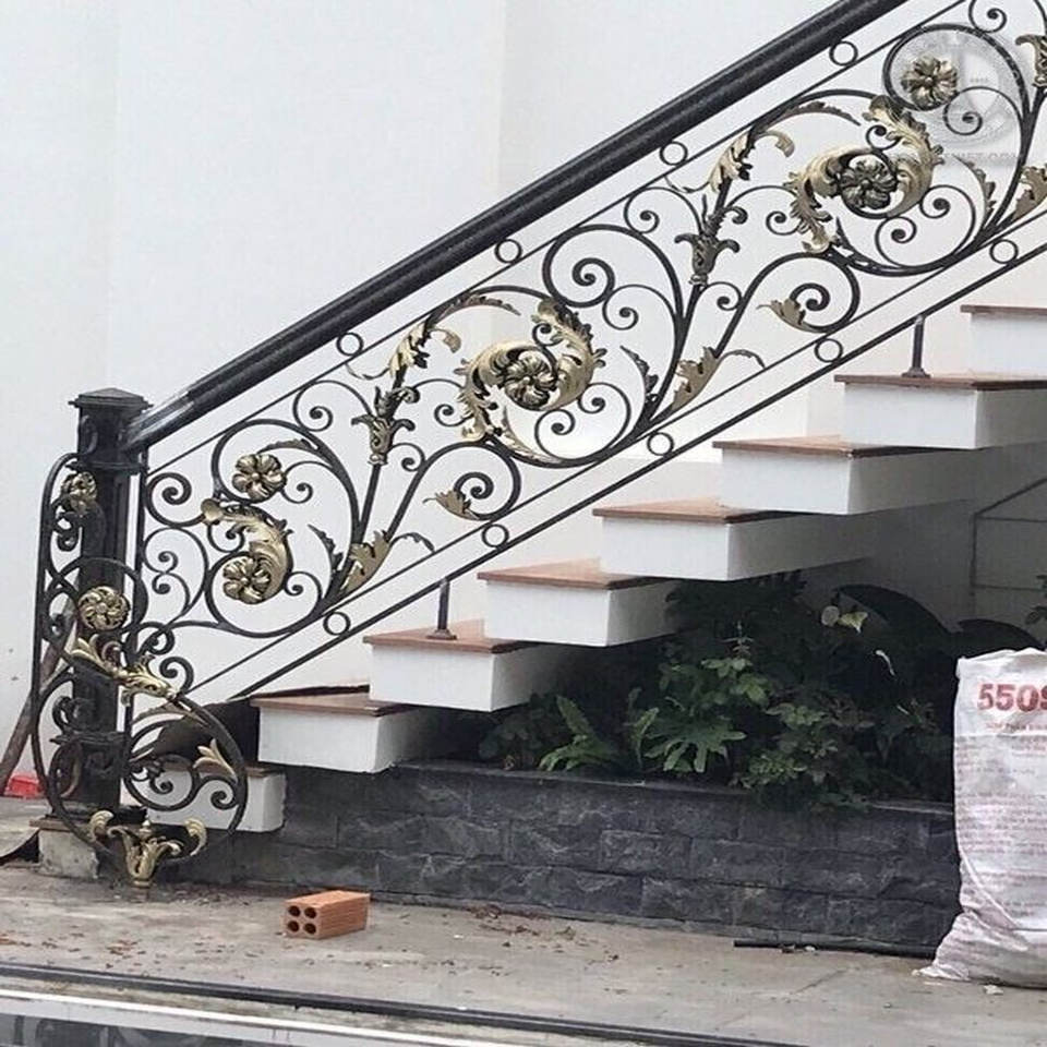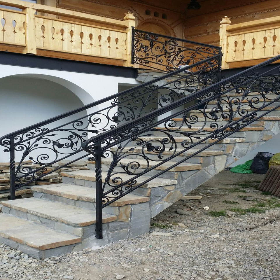Barandilla de escalera de hierro recubierta de polvo con balaustres forjados artísticos personalizados para un diseño de escalera interior elegante y seguro
