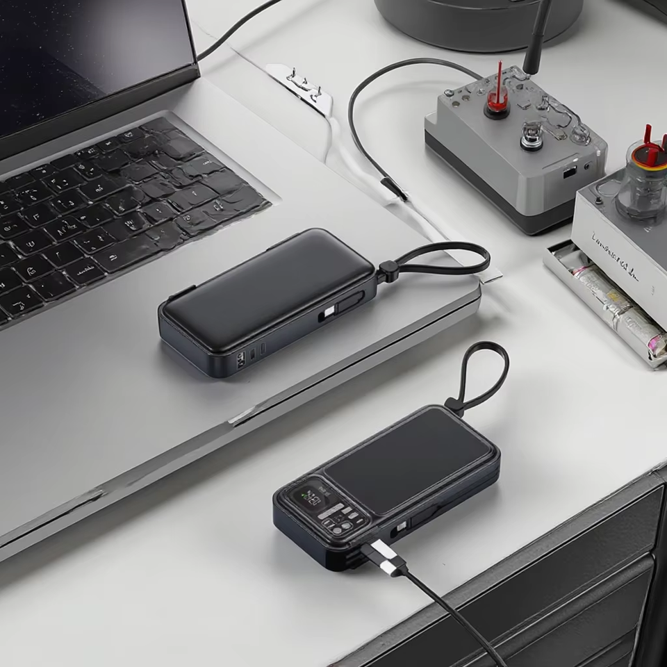 Power Bank AC Plug US UK EU AU Adaptador con pantalla Led 22,5 W Carga rápida AC Power Bank con cable tipo C para iPhone y Samsung