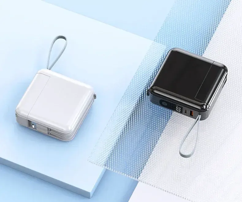Banco de Energía con Cable Integrado y Enchufe de CA, Cargador de Pared, Batería Externa de 22.5W con Carga Rápida para iPhone y Xiaomi