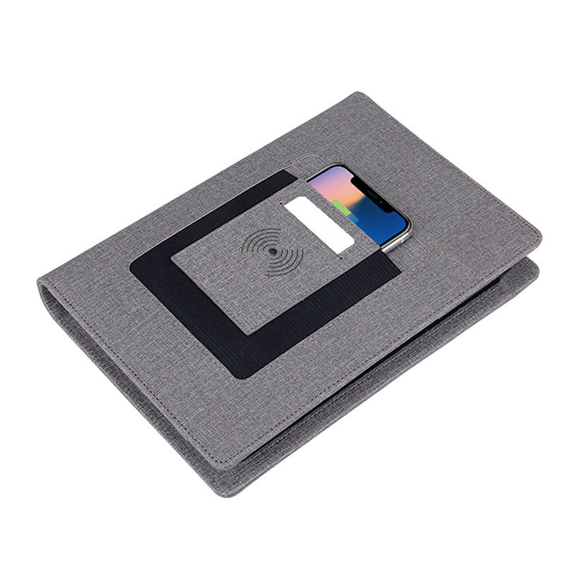 Libreta de Negocios A5 Multifuncional con Banco de Energía, Carga Inalámbrica, Anillo de Sujeción y Cubierta de Cuero