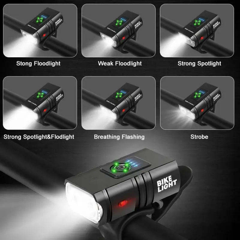 Luz LED Delantera para Bicicleta con Indicador de Batería, Recargable por USB, Batería Incorporada, Aleación de Aluminio, Accesorio de Ciclismo para Conducción Nocturna