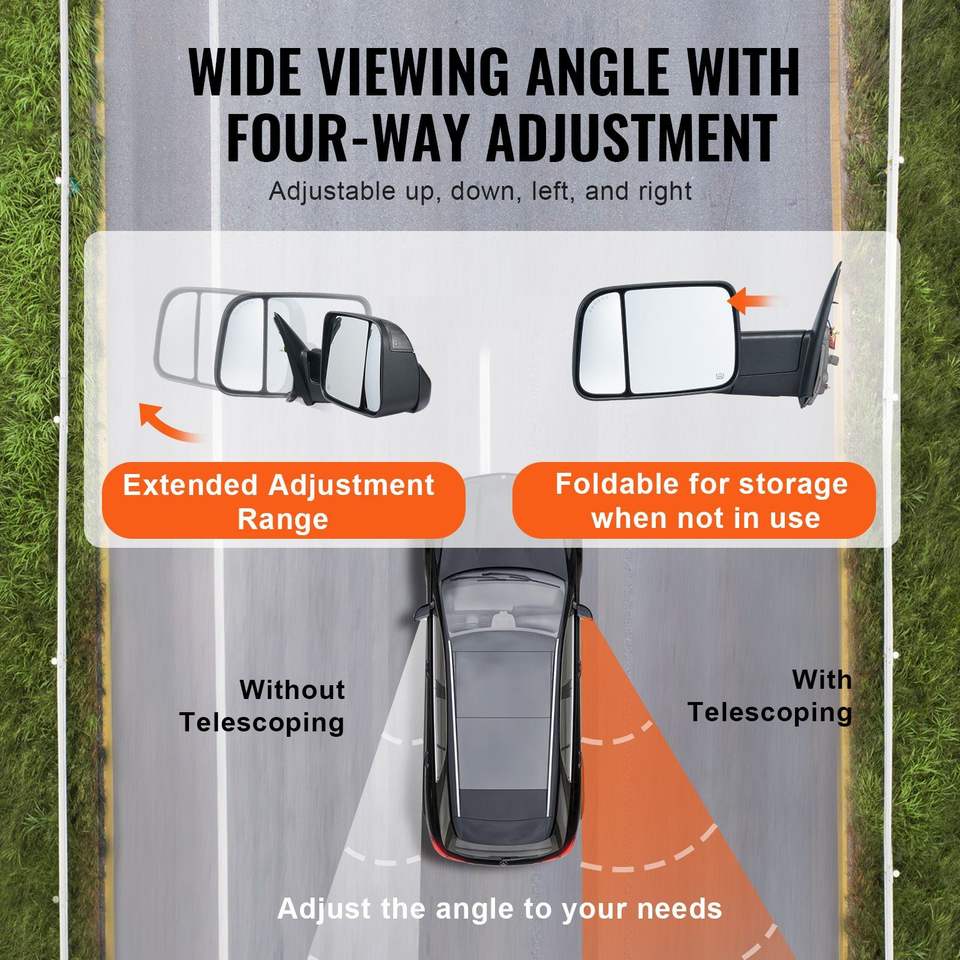 Espejos Retrovisores con Calefacción Eléctrica, Luz de Señalización y Luz de Pozo, Control Manual, para Remolque, para Dodge Ram 1500 2002-2008 2500 3500, Luz para Camioneta