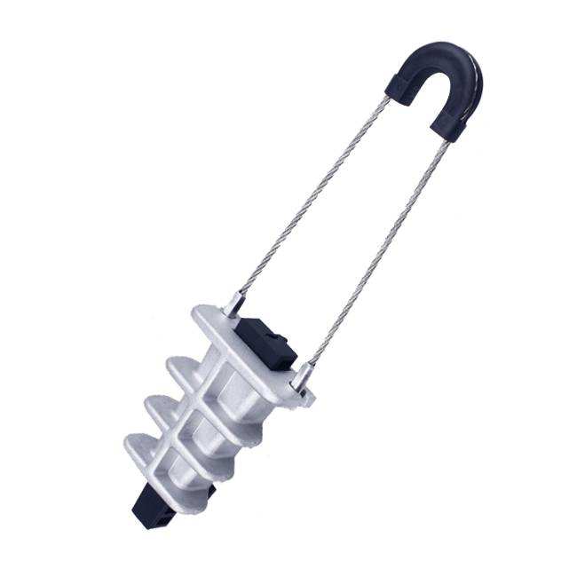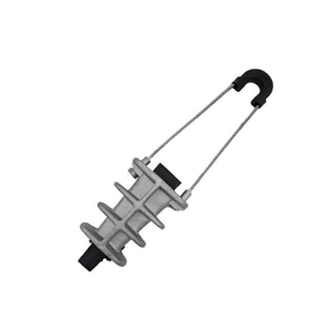 Accesorios para líneas eléctricas: Abrazadera de tensión aislada de plástico para suspensión de cable ABC en líneas aéreas, tipo cuña, para extremos de línea.
