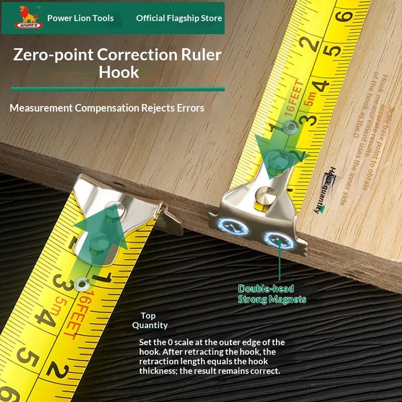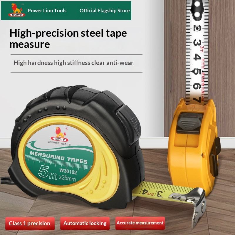 Cinta Métrica Autoenrollable de Alta Precisión Power Lion, 3M/5m, Amarilla, Métrica e Imperial, Doble Cara, Regla Feng Shui, Fuerte Magnética